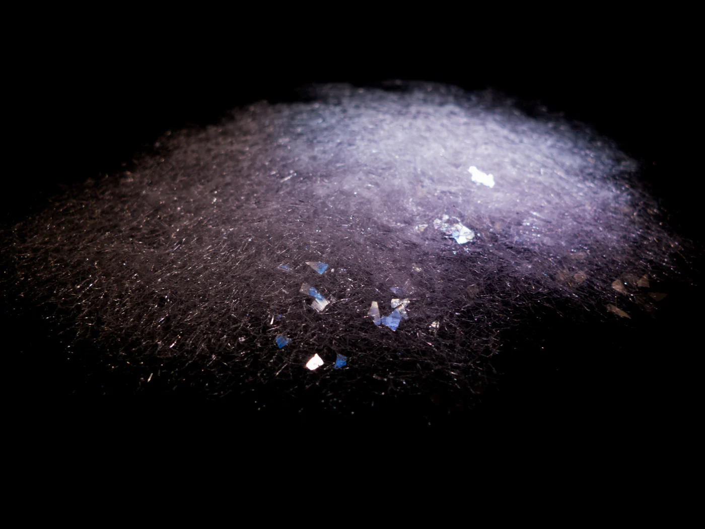 Unlike normal diamond dust, Stuart's 'super-shards' are larger and in random, irregular shapes meaning they reflect more light from more angles.